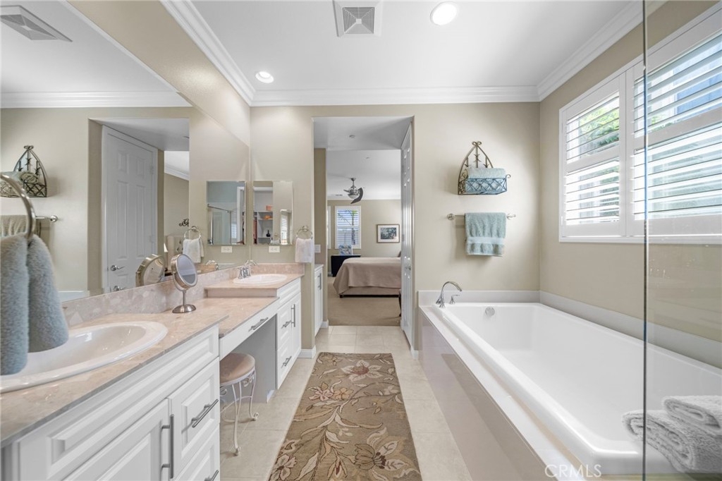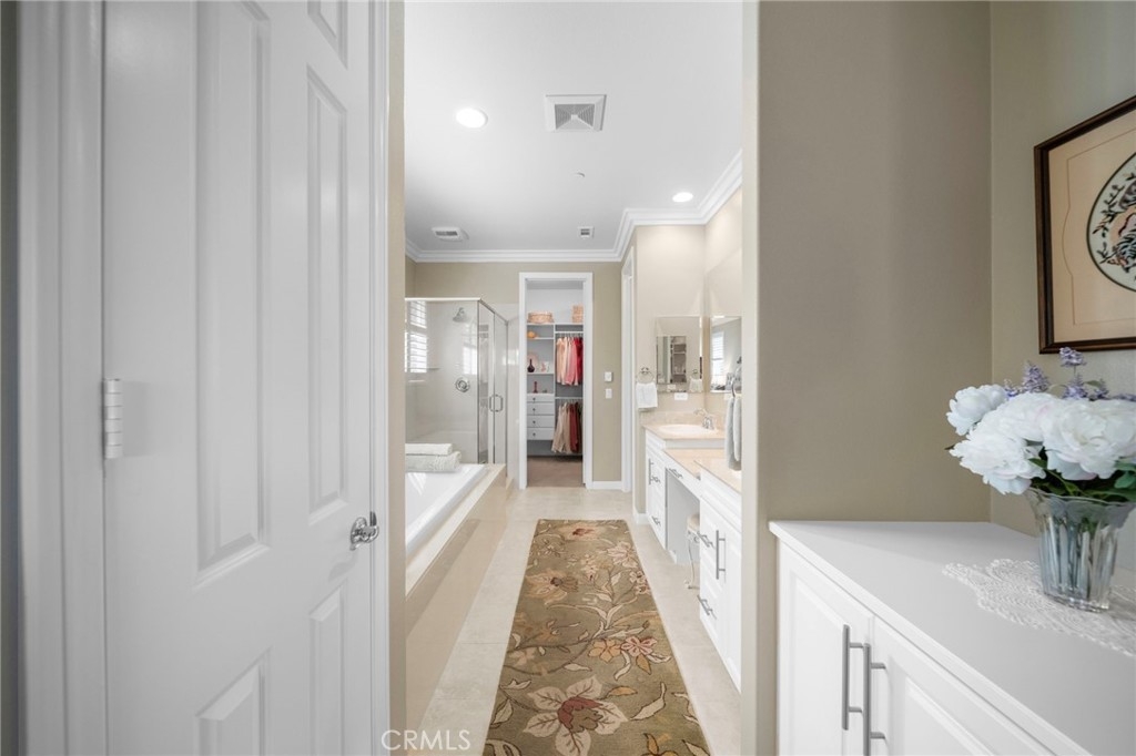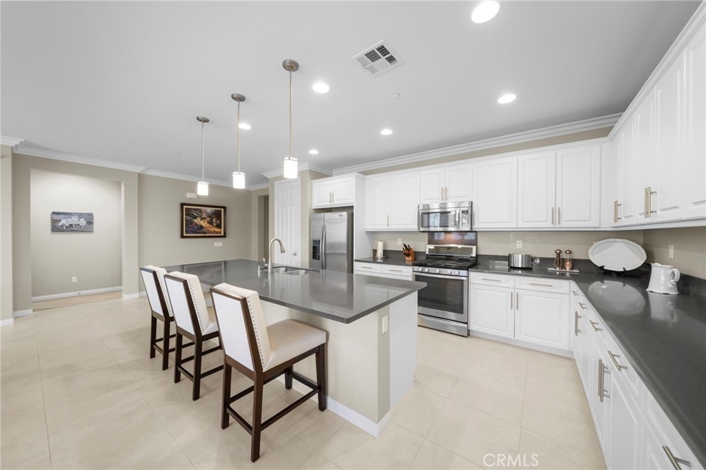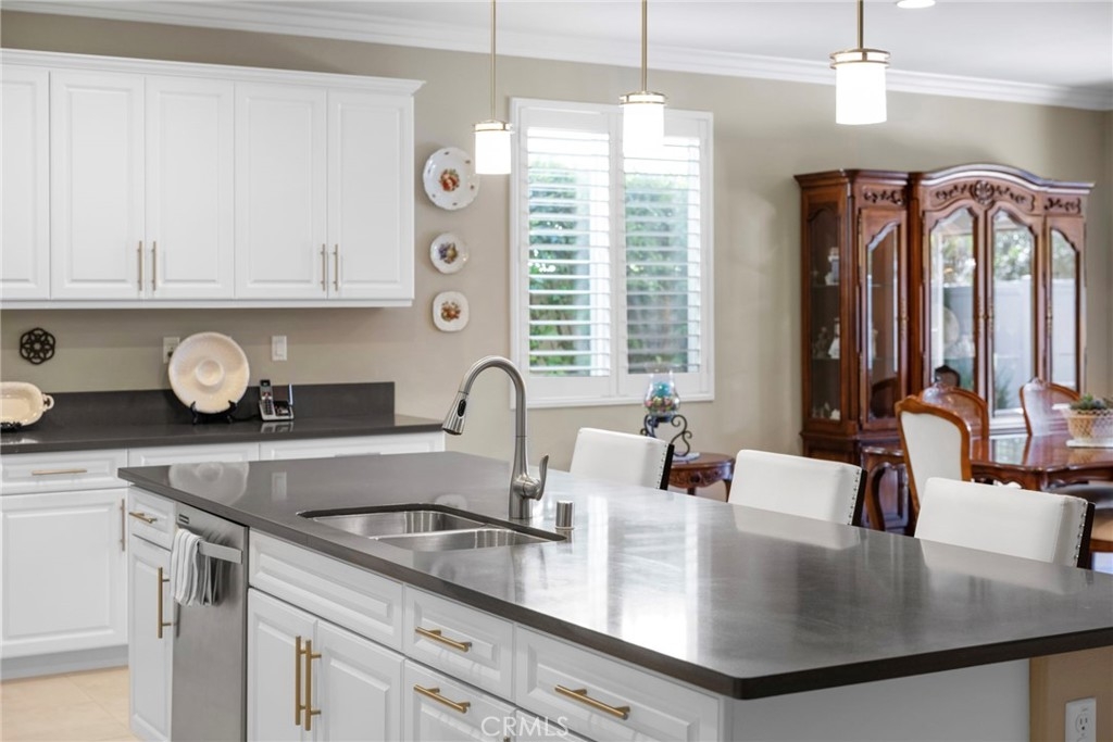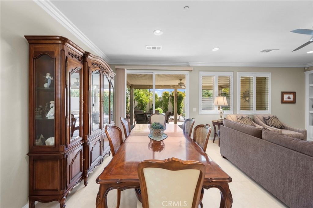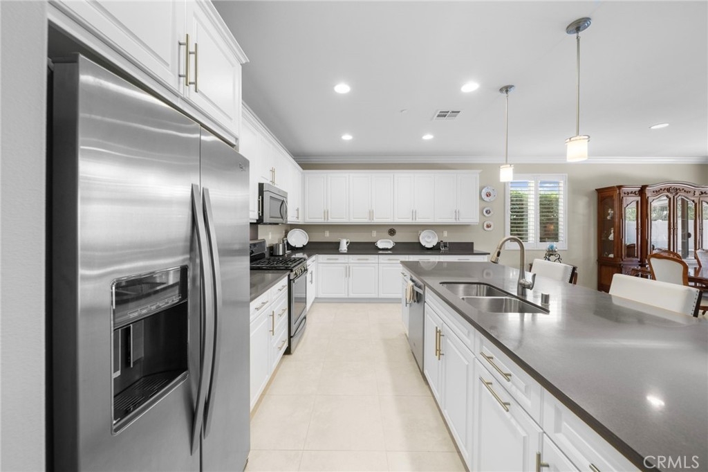 Welcome to Roripaugh Ranch — where luxury living meets everyday comfort. Located in this highly sought-after gated community, this beautifully upgraded single-story home offers an open floorplan designed for effortless living and entertaining. At the heart of the home is a spacious kitchen featuring a large central island, quartz countertops, stainless steel appliances, and crisp white cabinetry. The kitchen flows seamlessly into the dining area and family room, which boasts a cozy gas fireplace, custom built-ins, crown molding, and plantation shutters.