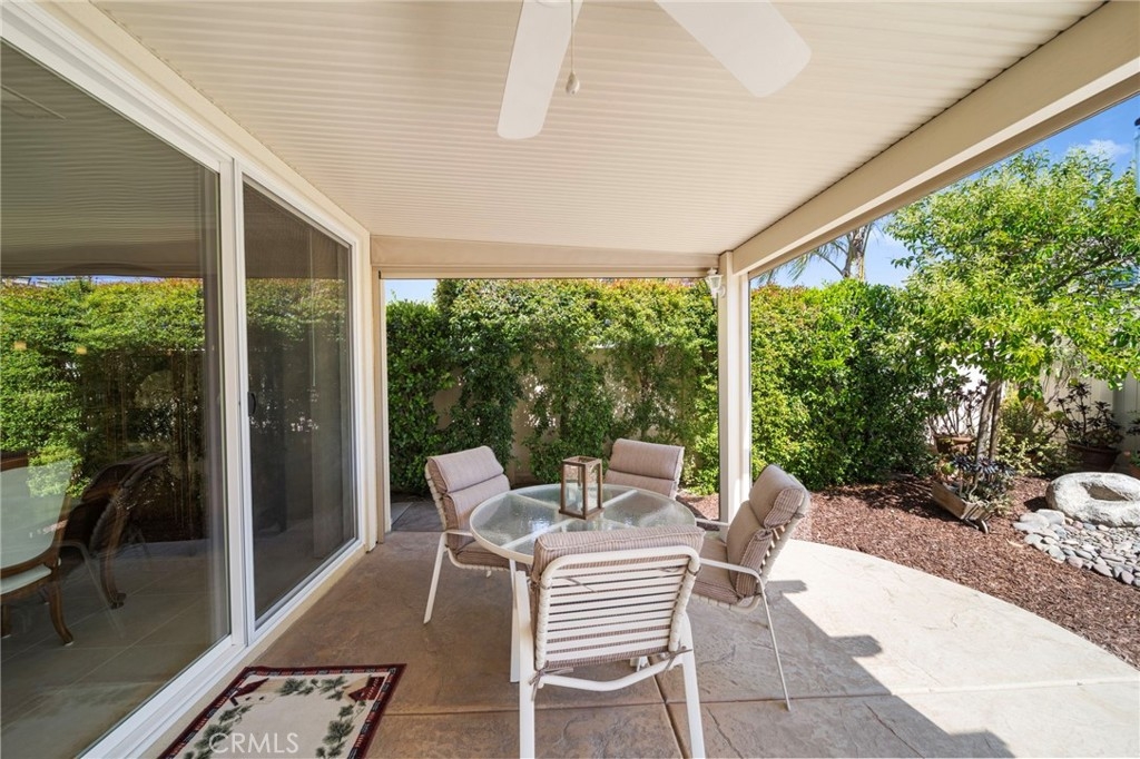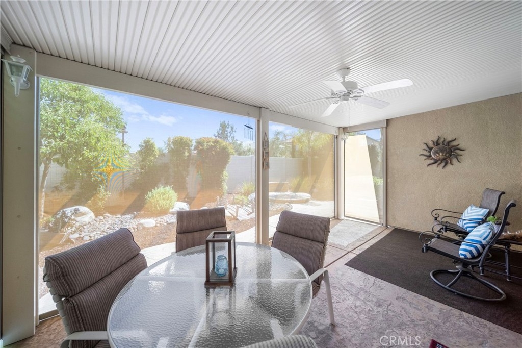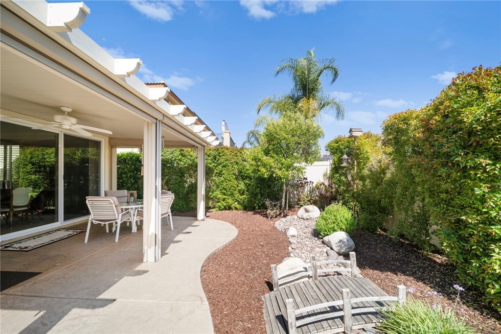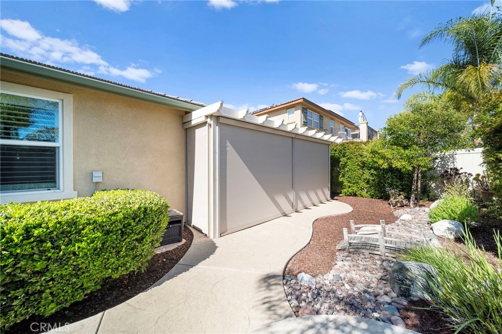 Step outside to find an allumawood patio cover with electronic shades creates a versatile indoor/outdoor living space perfect for relaxing or hosting guests from a lot uniquely positioned for maximum privacy.