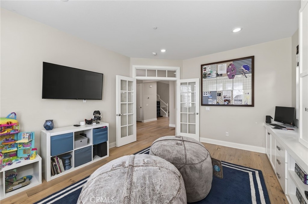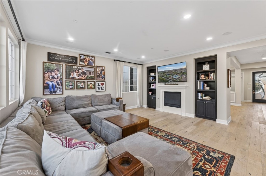 The main level features a spacious chef’s kitchen that opens seamlessly to the oversized family room, creating an ideal setting for everyday living and entertaining. A nearby dining area easily accommodates large gatherings, while the optional fifth bedroom—currently utilized as a private office—includes custom built-ins and is complemented by a conveniently located powder room.