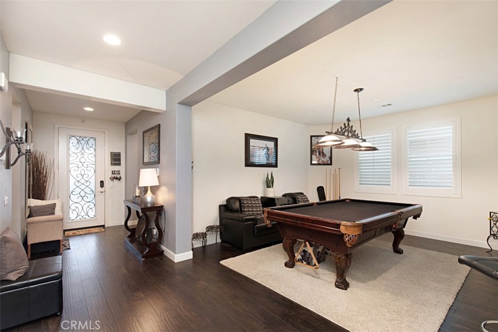Welcome to Roripaugh Ranch, as soon as you step inside the home you will notice the upgraded laminate plank flooring throughout the downstairs. The large bonus room can serve as a formal dining room or as you can see in the pictures has plenty of space for a pool table or formal living room. The open concept floor plan combines the great room, dining, and kitchen into one large open space. In the kitchen you will find granite counter tops, stainless steel appliances and upgraded lighting. There is also a downstairs bedroom and full bath perfect for guests. Head upstairs to find one of the best layouts available in Roripaugh Ranch. The spacious master suite leaves little to be desired with 2 separate walk in closets and a master bath including walk in shower w/ rain shower head, oversized bath tub and dual sinks. The 3 additional bedrooms are not your typical secondary bedrooms, they are much larger and each have a walk in closet. In the backyard you will find a variety of features to enjoy including a casual seating area around the stone fireplace, alumawood patio cover, natural gas and water hookups for the outdoor kitchen, a dedicated dog run, and a Koi Pond with a waterfall. Located in the highly sought after gated community of Roripaugh Ranch adjacent to one of the two community parks with access to resort like amenities including clubhouse, pool, spa, fitness center, 2 tennis courts, 2 half basketball courts, and private walking trail.